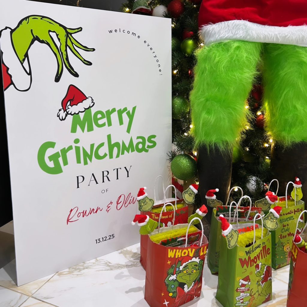 The Grinch meets traditional Christmas for a Nottinghamshire Children’s Birthday Party, all guests enjoyed a fun filled afternoon of great food including some Christmas favourites, a special visit from Father Christmas and his naughty elves who entertained the children with games and dancing.